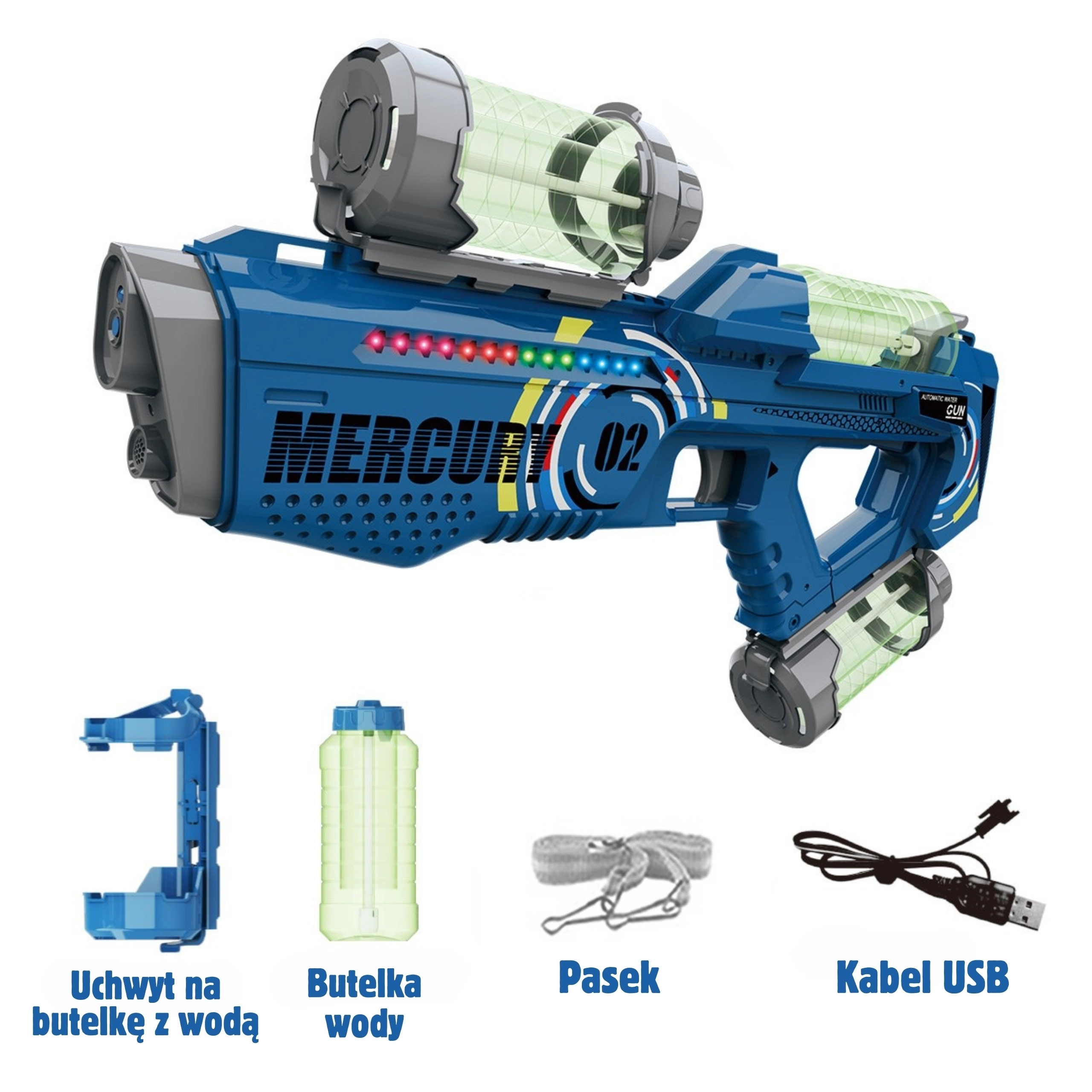 - pistolă cu apă MERCURY 02, 3 rezervoare, cablu USB, curea de umăr, manual