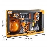 Această bogată trusă de unelte pentru copii este concepută pentru micii constructori de la 3 ani. Accentul pe siguranță și autenticitate este asigurat de cască, ochelarii de protecție și mască, în timp ce ciocanul pneumatic pe baterii aduce efecte realiste amuzante inspirate de uneltele reale. Piesele netede din ABS sunt rezistente, ușoare și se potrivesc bine în mâinile mici.