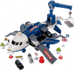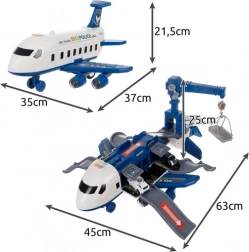Avionul de poliție pliabil aduce copiilor lumea plină de acțiune a serviciilor de intervenție într-o singură jucărie. După deschidere se transformă într-un parcaj detaliat cu rampe de trecere, garaje și funcții distractive. Datorită efectelor luminoase și sonore și antrenării roților din spate, copiii se vor bucura de un joc realist plin de urmăriri și misiuni de salvare.