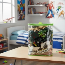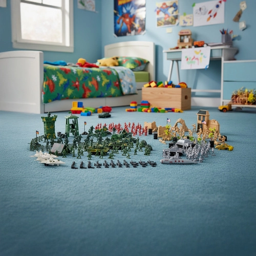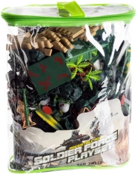 Set mare cu până la 300 piese pentru scenarii militare creative: soldați în culori diferite, tancuri, avioane, tunuri, clădiri și accesorii. Figurine din plastic rezistente, la scară aprox. 1:40, toate depozitate într-o husă practică cu fermoar și mâner pentru transport ușor. Un cadou grozav pentru dezvoltarea imaginației, creativității și gândirii strategice.