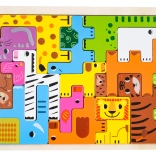 Acest puzzle din lemn cu animale este o alegere ideală pentru primele puzzle-uri ale copiilor. Setul este realizat din lemn rezistent și colorat cu vopsele netoxice, sigure pentru copii. Piesele au margini netede, neascuțite, fiind ușor de ținut în mână și de așezat în siguranță pe suport.
