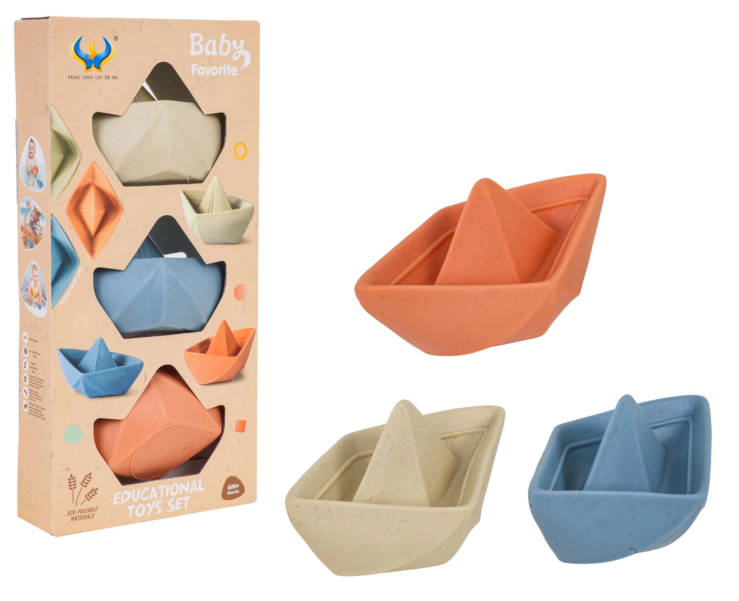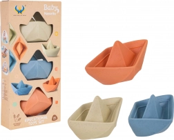 Acest set de trei bărcuțe drăguțe aduce copiilor multă distracție la băiță și în jocurile pe uscat. Materialul durabil, plăcut la atingere și lipsit de substanțe nocive este blând cu pielea delicată a copiilor și ușor de întreținut. Datorită formei care se depozitează eficient, bărcuțele pot fi ușor stivuite și puse la loc.
