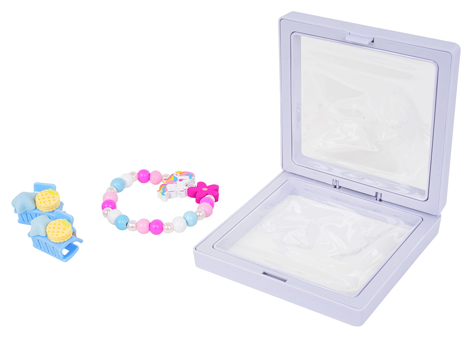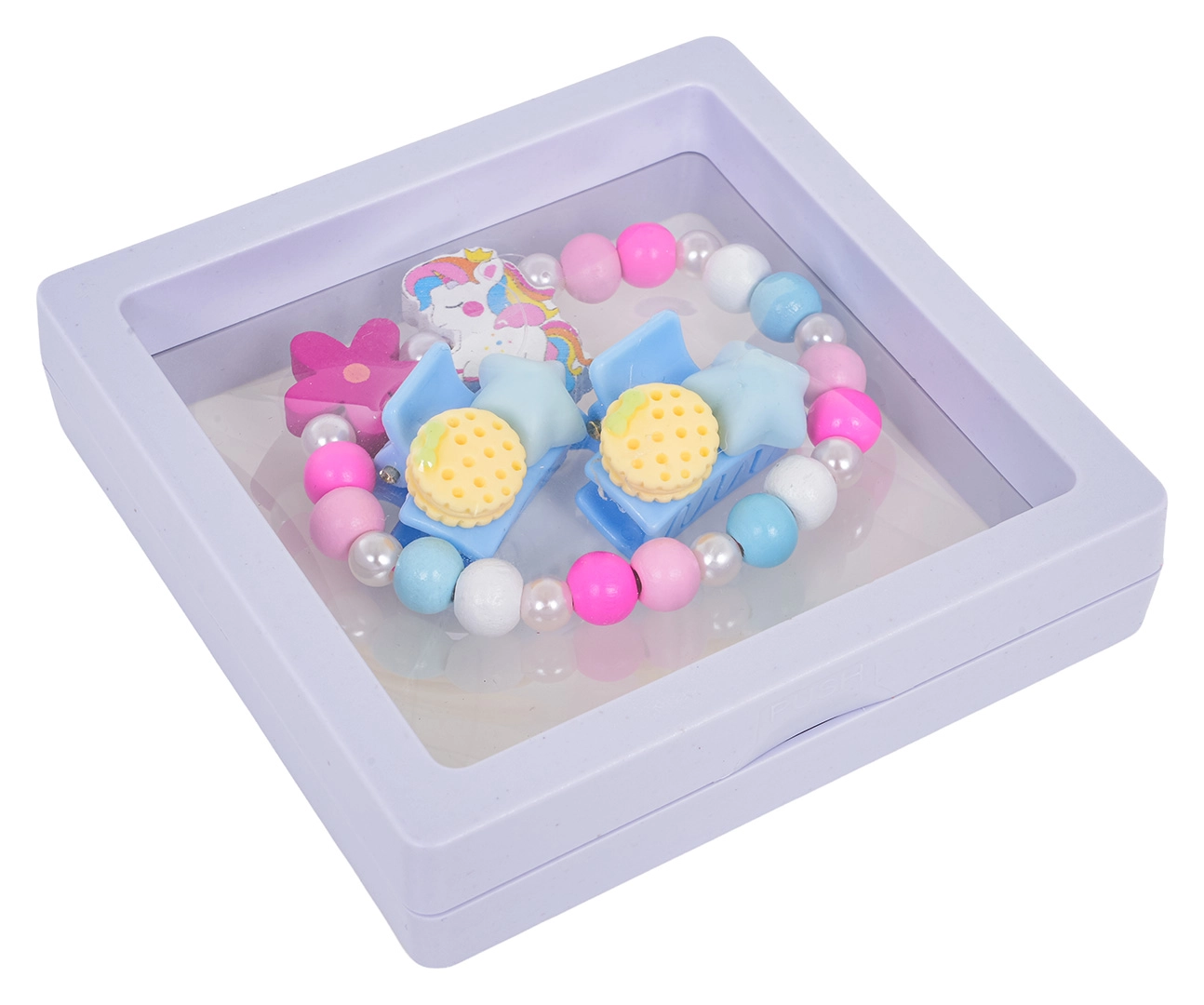 Datorită dimensiunilor compacte, setul încape comod în rucsăcel sau sertar și este gata de joacă acasă sau în călătorii. O alegere perfectă pentru micile iubitoare de culori și motive drăgălașe, care vor să asorteze brățara cu părul într-un singur stil.