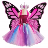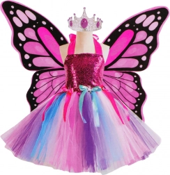 Acest costum colorat transformă orice copil într-o adevărată zână-fluture. Impresionează prin culori bogate, efect curcubeu al fustei și aripi spectaculoase cu LED-uri și efecte sonore. Alegere excelentă pentru carnaval, serbări școlare, ședințe foto și după-amieze pline de joacă.