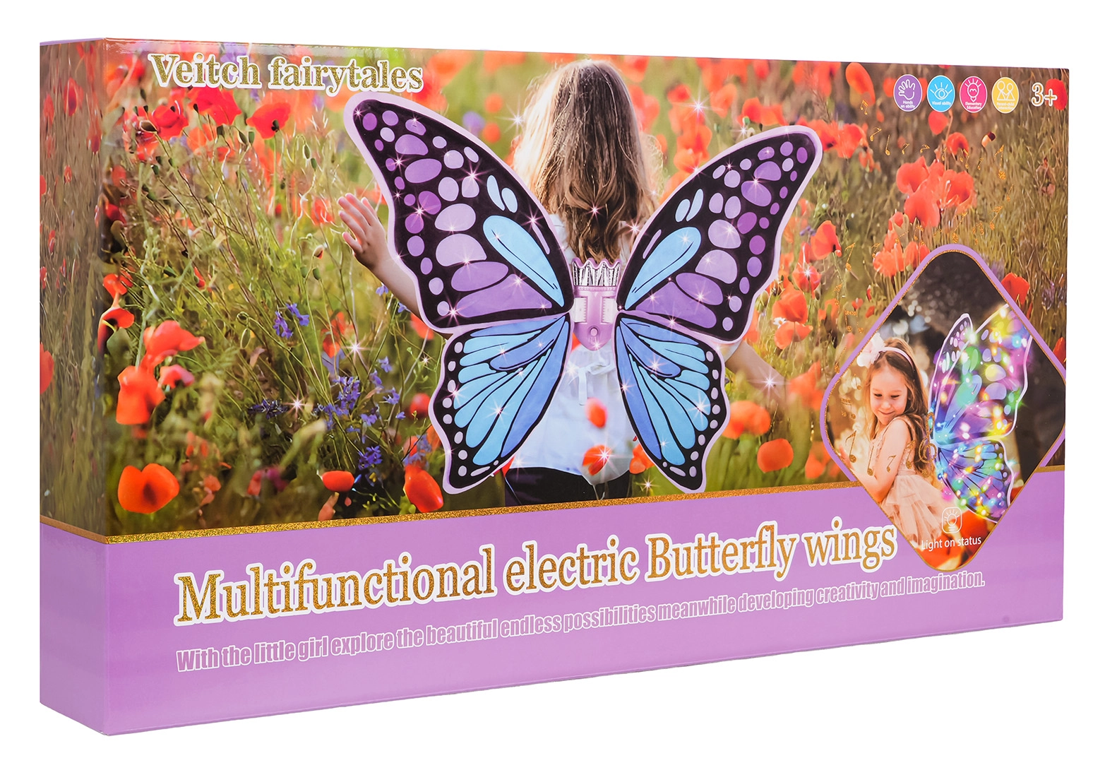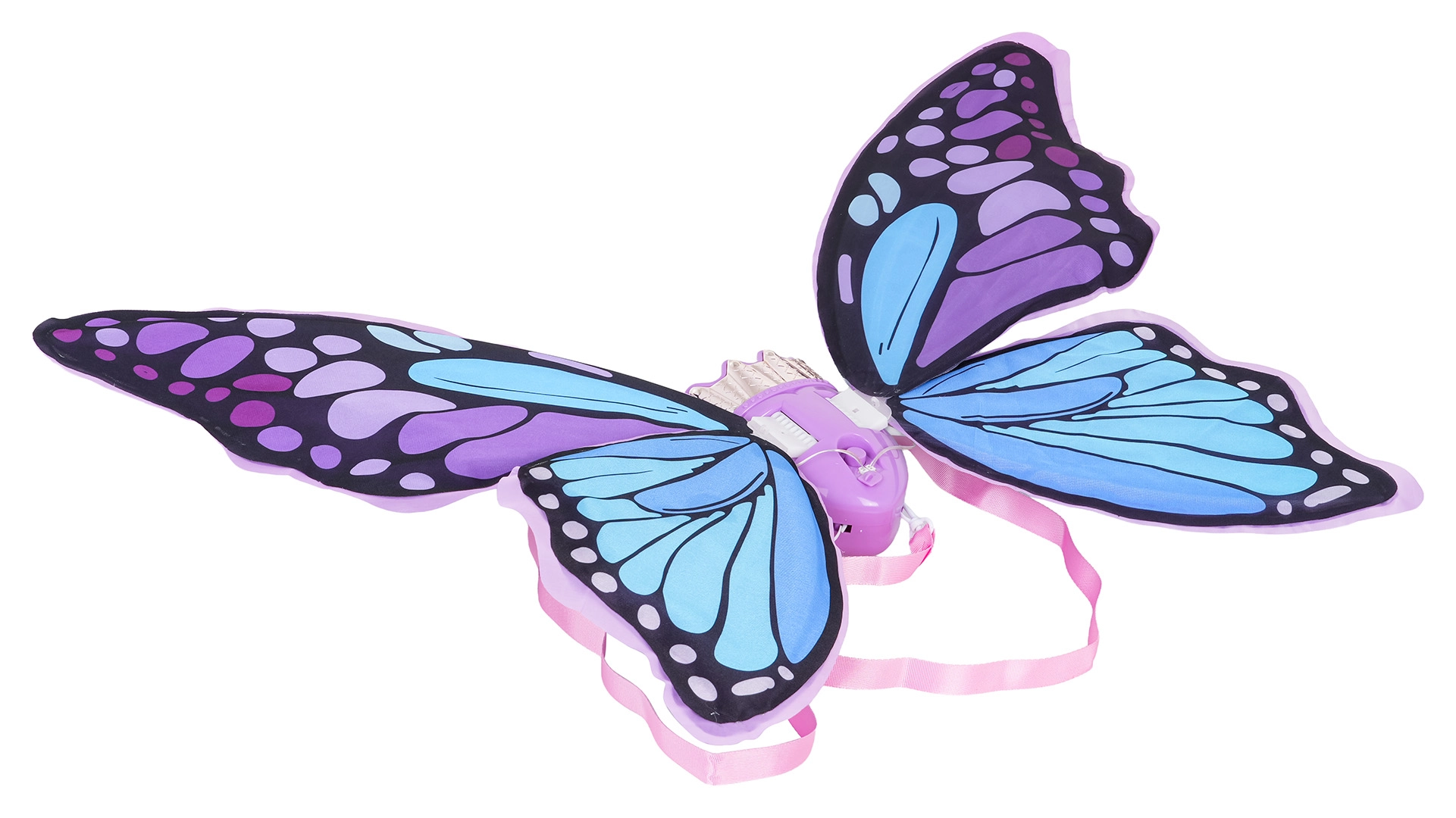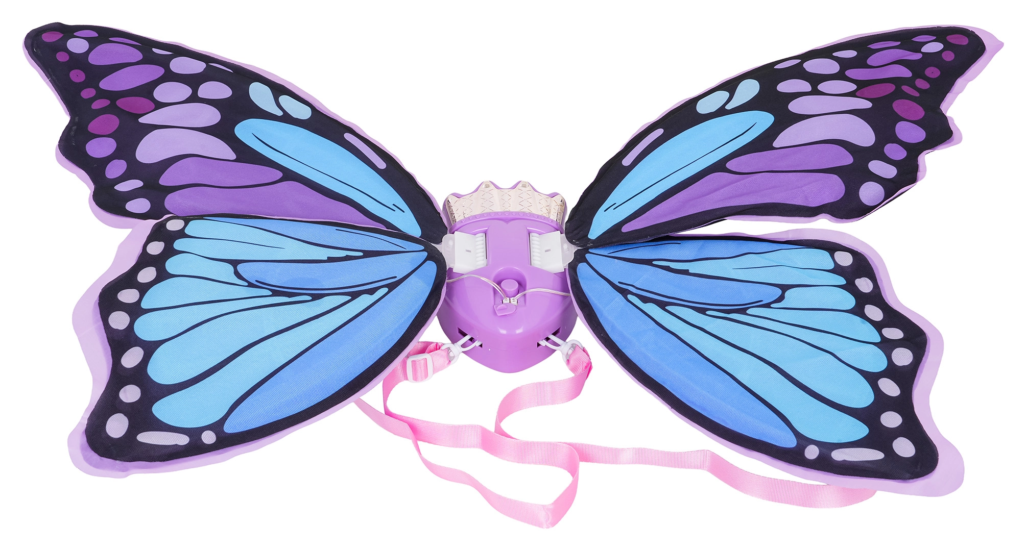 Aripile de fluture fermecătoare, în nuanțe de mov și albastru, vor însufleți orice petrecere pentru copii. Construcția ușoară și bretelele moi asigură confort, în timp ce efectele luminoase și melodiile stimulează imaginația celor mici.