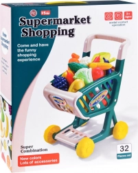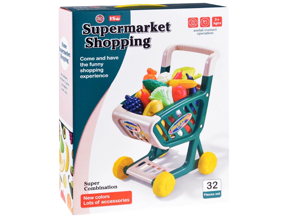 Drăguț coș de cumpărături pentru copii, cu un set bogat de fructe și legume, oferă distracție grozavă în jocurile de-a magazinul. Construcția din plastic ușoară și durabilă, roțile late și mânerul confortabil le permit copiilor să împingă ușor coșul, în timp ce accesoriile colorate susțin imaginația și abilitățile sociale.