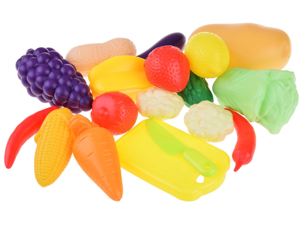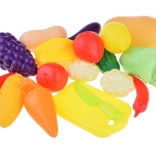 - Fructe, legume, tocător, cuțitaș (joacă de pregătire a mâncării)