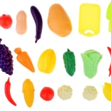 Formele și culorile diverse stimulează imaginația, învățarea denumirilor alimentelor și joaca de rol ca vânzător sau client.