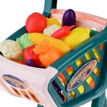 Acest coș de cumpături pentru copii este ideal pentru jocurile de-a supermarketul. Datorită coșului robust din plastic, roților late și mânerului confortabil, este ușor de manevrat de către copii. Include un set variat de fructe și legume în culori vii, care stimulează joaca creativă și învățarea activităților cotidiene.