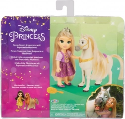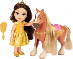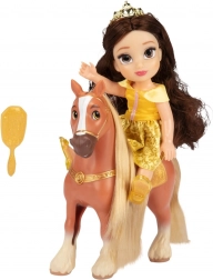 Acest set fermecător îi poartă pe copii în lumea poveștilor DISNEY. Păpușa RAPUNZEL în rochie mov sau BELLE în rochie galbenă este pregătită pentru o plimbare cu căluțul ei. Cu peria inclusă, se pot pieptăna și aranja părul lung al păpușii și coama calului.