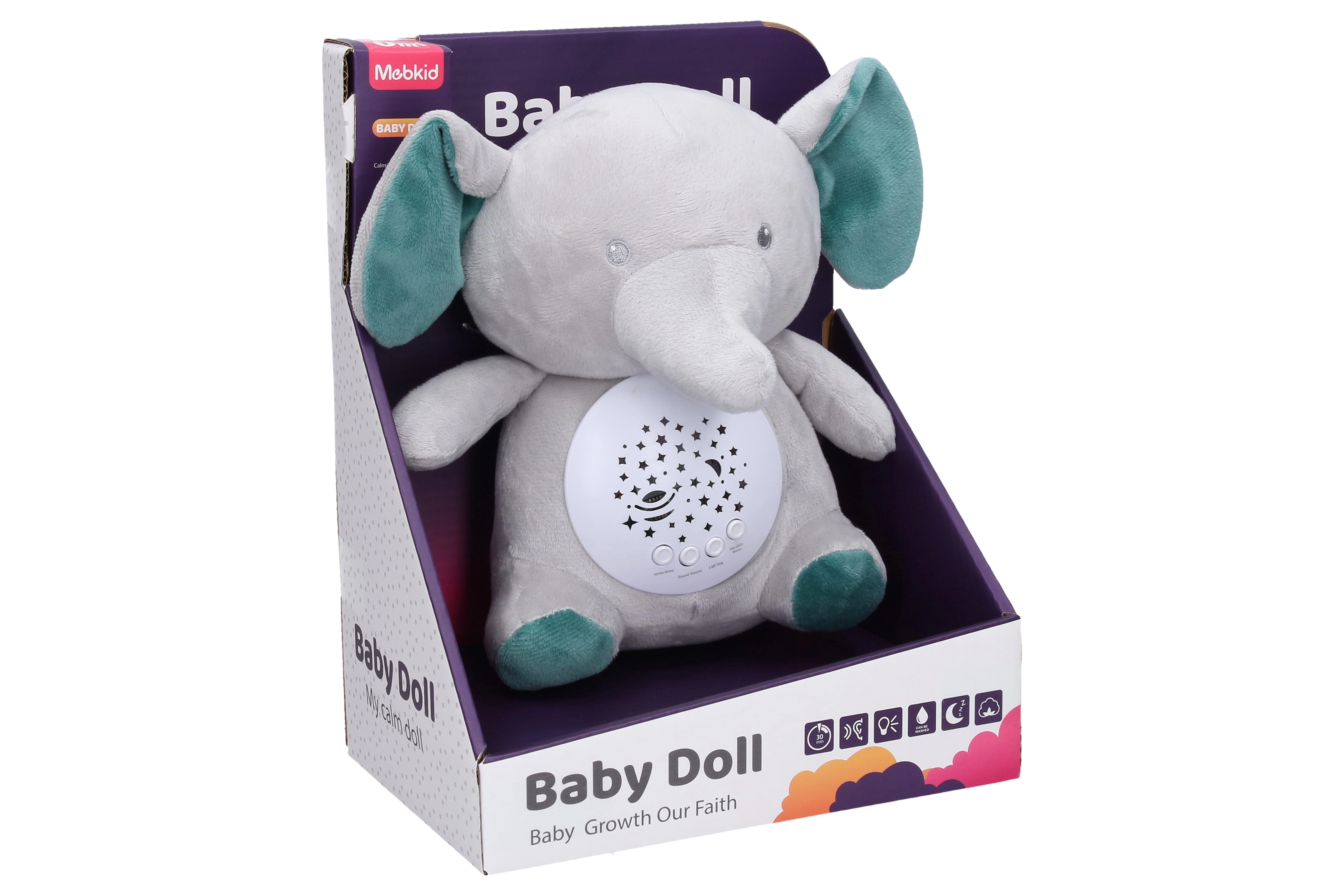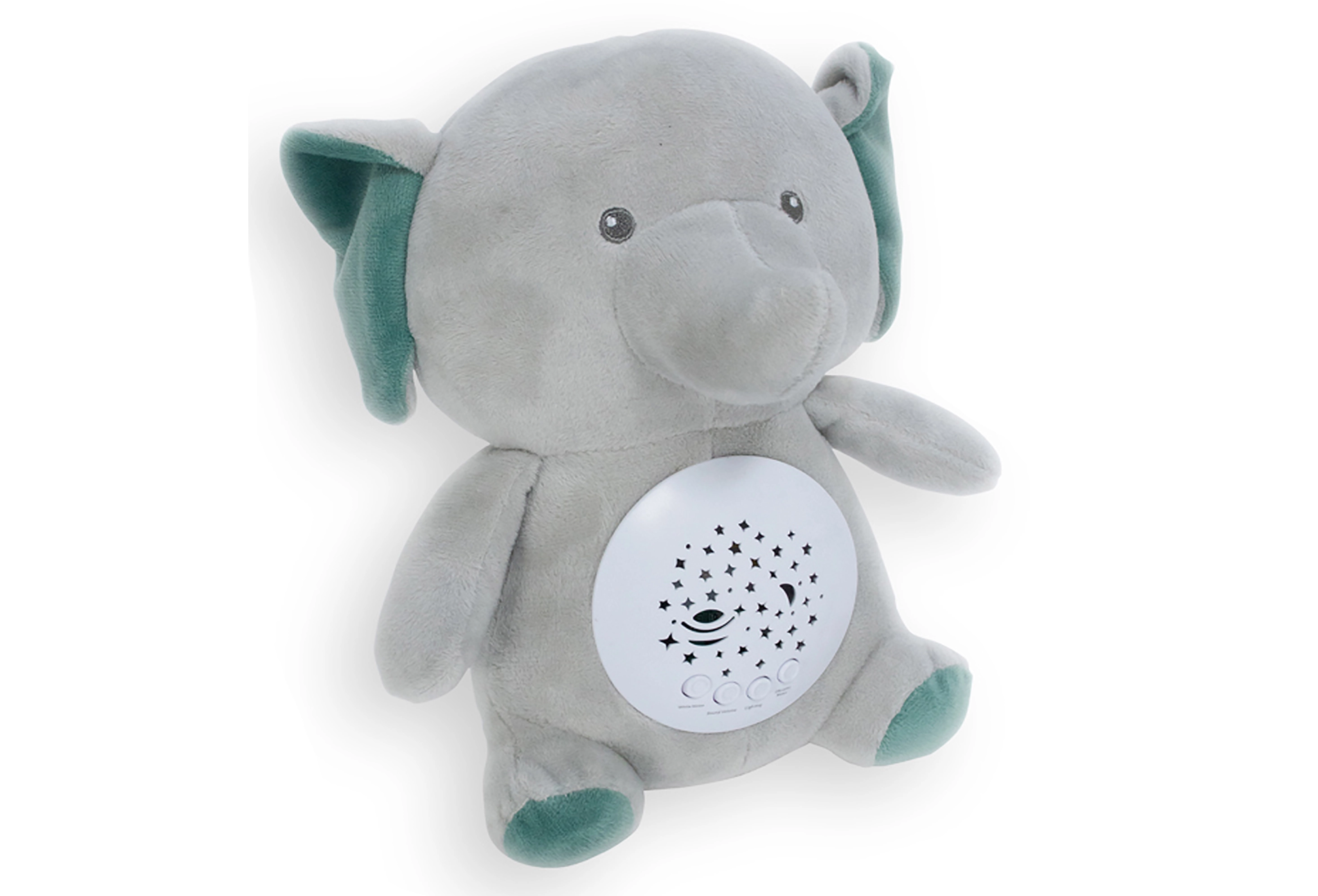 Adorabilul elefant de pluș pentru adormit, cu dimensiunea de 26 cm, îi ajută pe copii să adoarmă liniștiți datorită combinației de lumină colorată, 10 melodii liniștitoare și 4 tipuri de zgomot alb. Oferă volum reglabil și oprire automată după 30 de minute pentru un somn sigur și neîntrerupt.