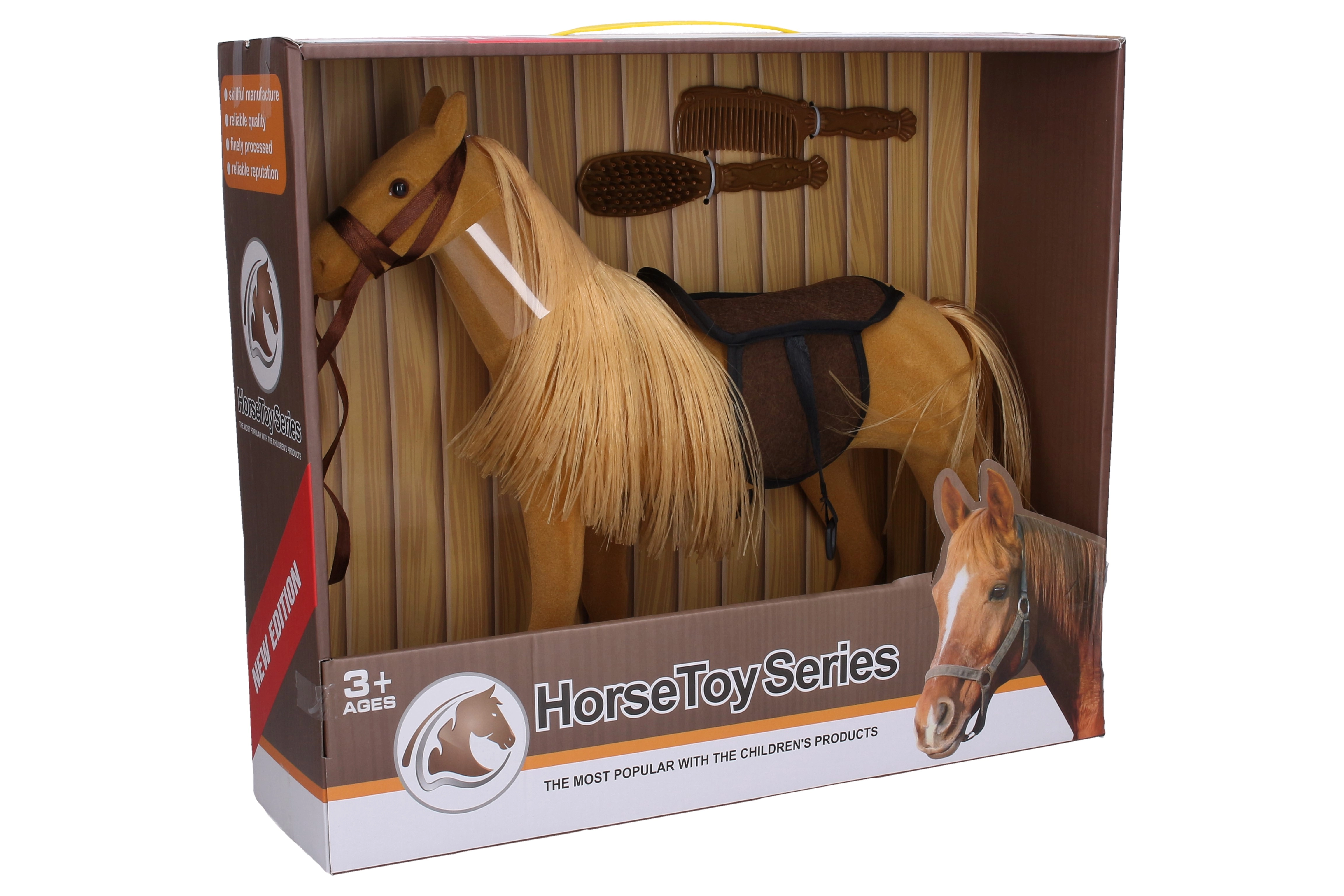 Acest cal de pluș moale și plăcut este ideal atât pentru îmbrățișat, cât și pentru jocuri de imaginație. Datorită șeii și celor doi piepteni incluși, copiii pot exersa îngrijirea calului, își pot dezvolta motricitatea fină și își pot inventa propriile povești.