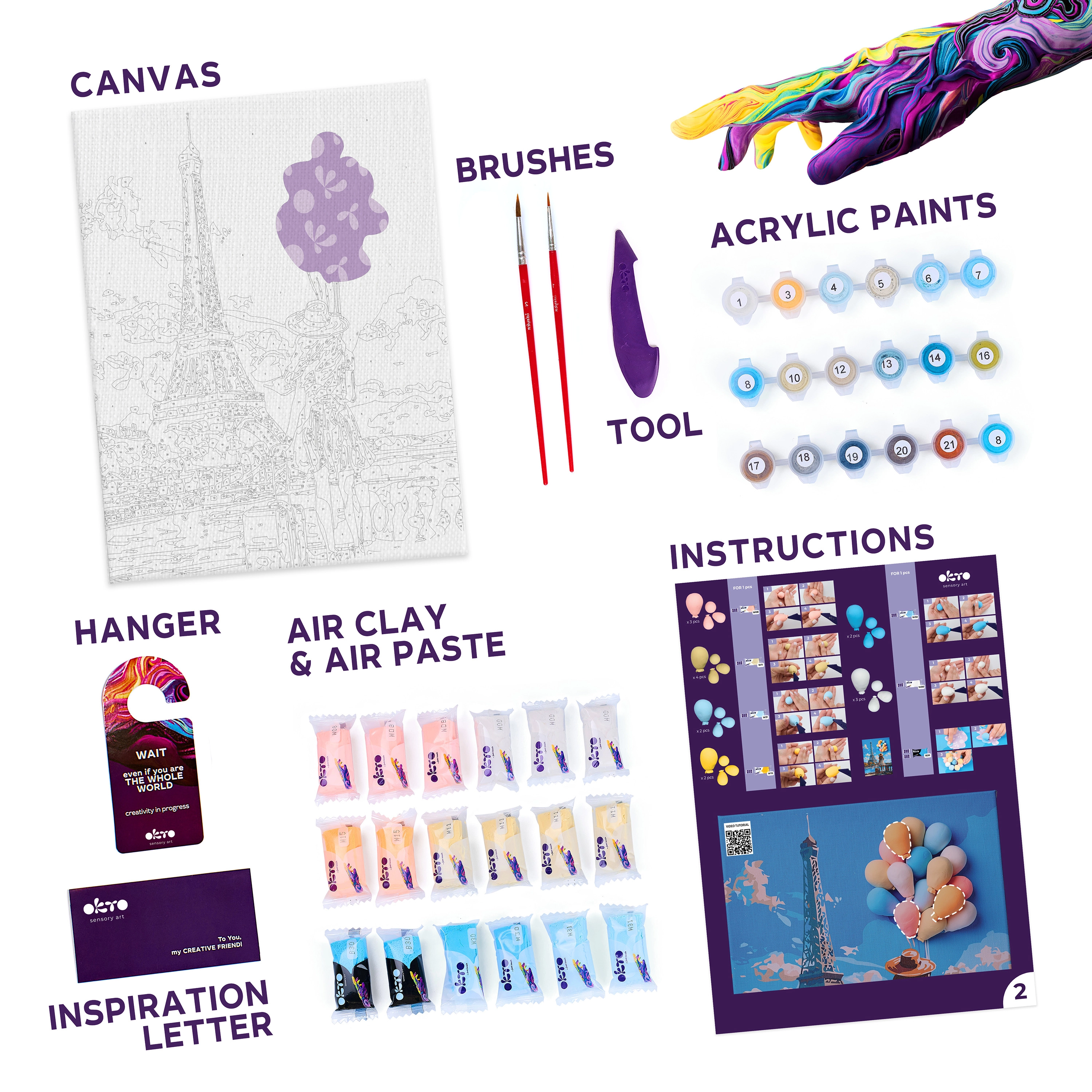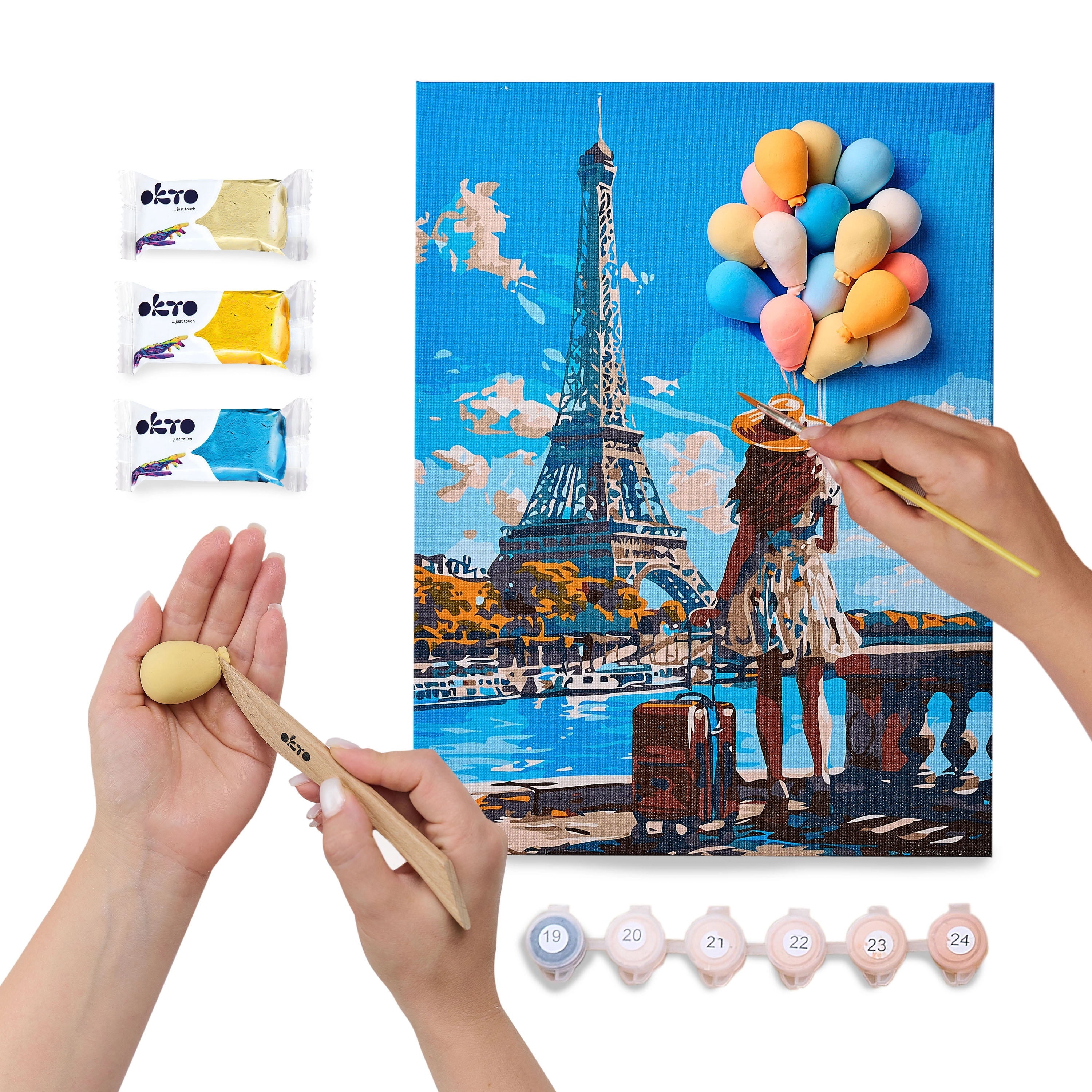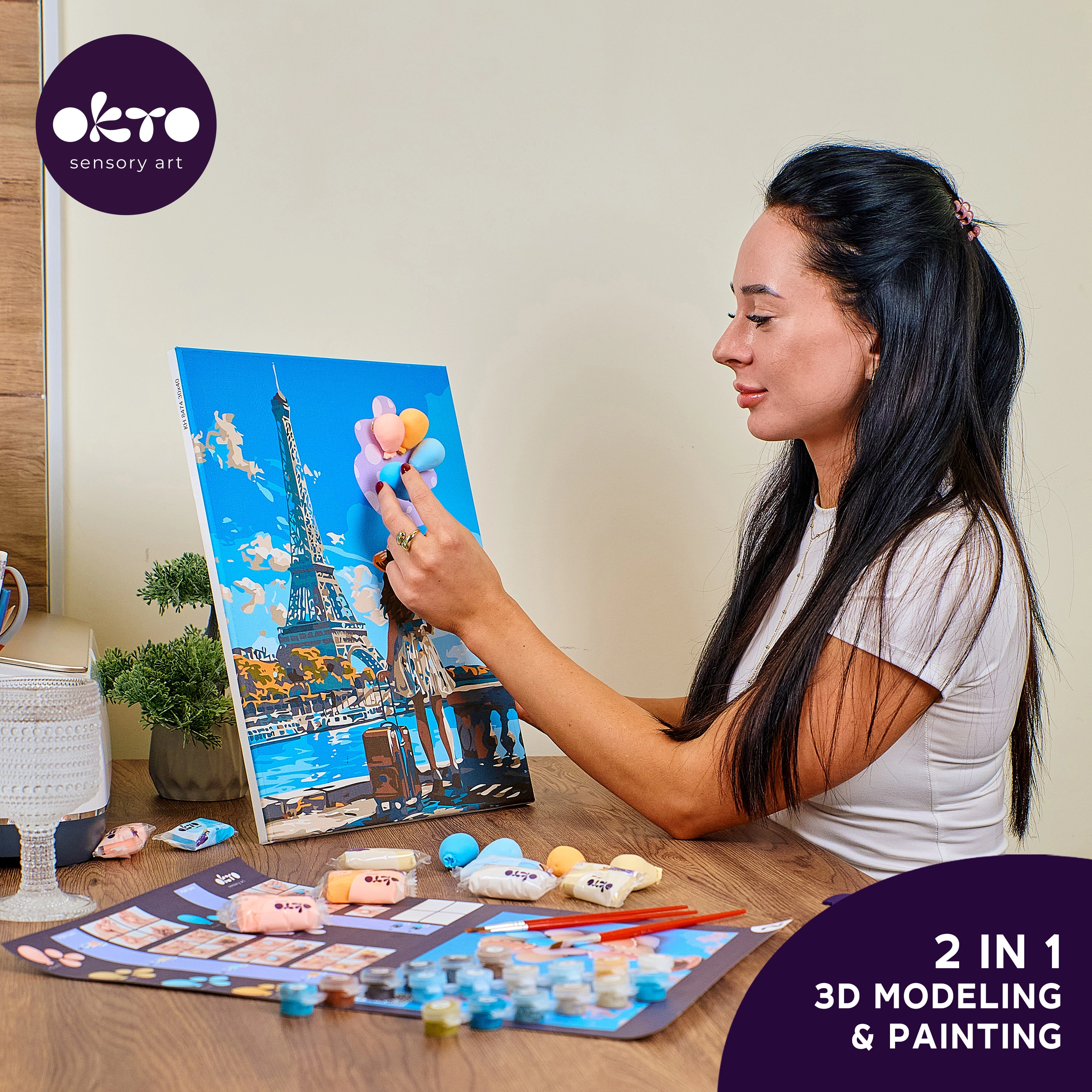 Acest set creativ OKTO îmbină pictura cu modelarea 3D, astfel încât poți crea acasă un tablou unic cu motivul Parisului. Datorită șablonului și instrucțiunilor pas cu pas, vei obține elemente în relief care oferă profunzime și stil tabloului. Ideal ca și cadou sau decorațiune pentru interior.