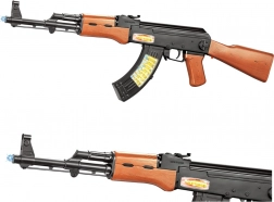 Pusca automată de jucărie pentru copii AK-47 oferă distracție plină de acțiune cu efecte luminoase și efecte sonore. În finisaj negru-maro cu imitație de lemn arată ca una reală. Excelentă pentru jocuri de rol, dezvoltă imaginația și oferă multă distracție captivantă atât acasă, cât și în aer liber.