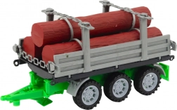 Acest tractor detaliat cu remorcă reproduce fidel tehnica forestieră reală. Datorită mecanismului de inerție, după o împingere pornește mai sprinten, remorca este adaptată pentru transportul buștenilor din lemn, iar ansamblul susține excelent jocul tematic la fermă și în pădure.