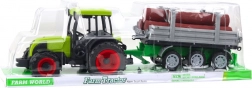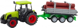 Tractor verde realist cu remorcă pentru lemne, cu o lungime de 47 cm, îi va încânta pe micii fermieri. Are viteză mai mare după împingere înainte, bușteni incluși în set și execuție din plastic durabil pentru joacă îndelungată și sigură.