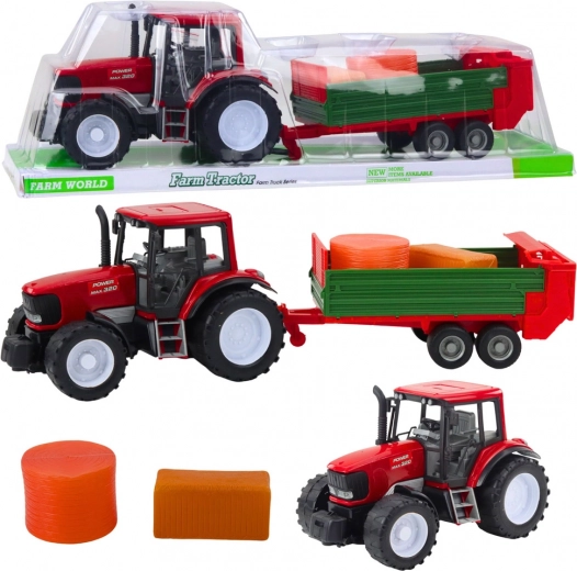 Descoperă setul robust de fermă care îi va încânta pe micii iubitori ai vieții la țară. Tractorul roșu detaliat, cu roți mari și remorcă verde detașabilă, reproduce fidel utilajele agricole reale. Setul include și baloți de fân, care pot fi încărcați, transportați și descărcați.