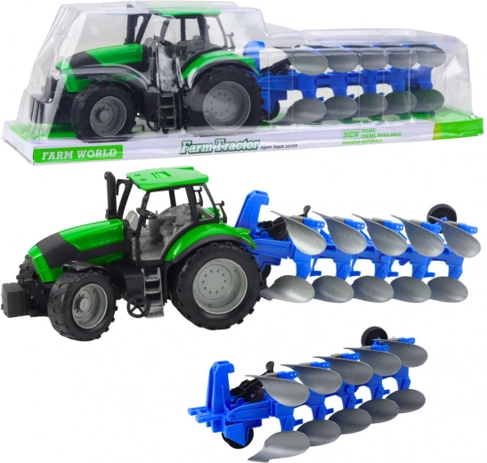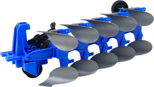 Plugul albastru, cu numeroase discuri și cuplare solidă, permite imitarea fidelă a muncii pe câmp.