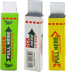 La prima vedere o gumă obișnuită, în realitate un gadget ingenios de farsă. Când tragi de „fâșie”, produce un impuls electric ușor, care este sigur pentru sănătate, dar suficient de surprinzător. Datorită aspectului realist, este ideal pentru farse la petreceri, pentru glumeți și ca cadou original.