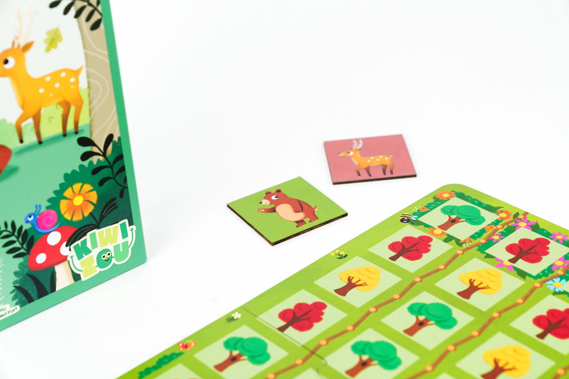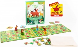 Pachetul conține: plan de joc mare al pădurii (4 piese), 4 pioni totem din carton cu animăluțe, 4 cărți personaj, 30 de jetoane, 12 jetoane cu hrană, săculeț din bumbac pentru extragere.
