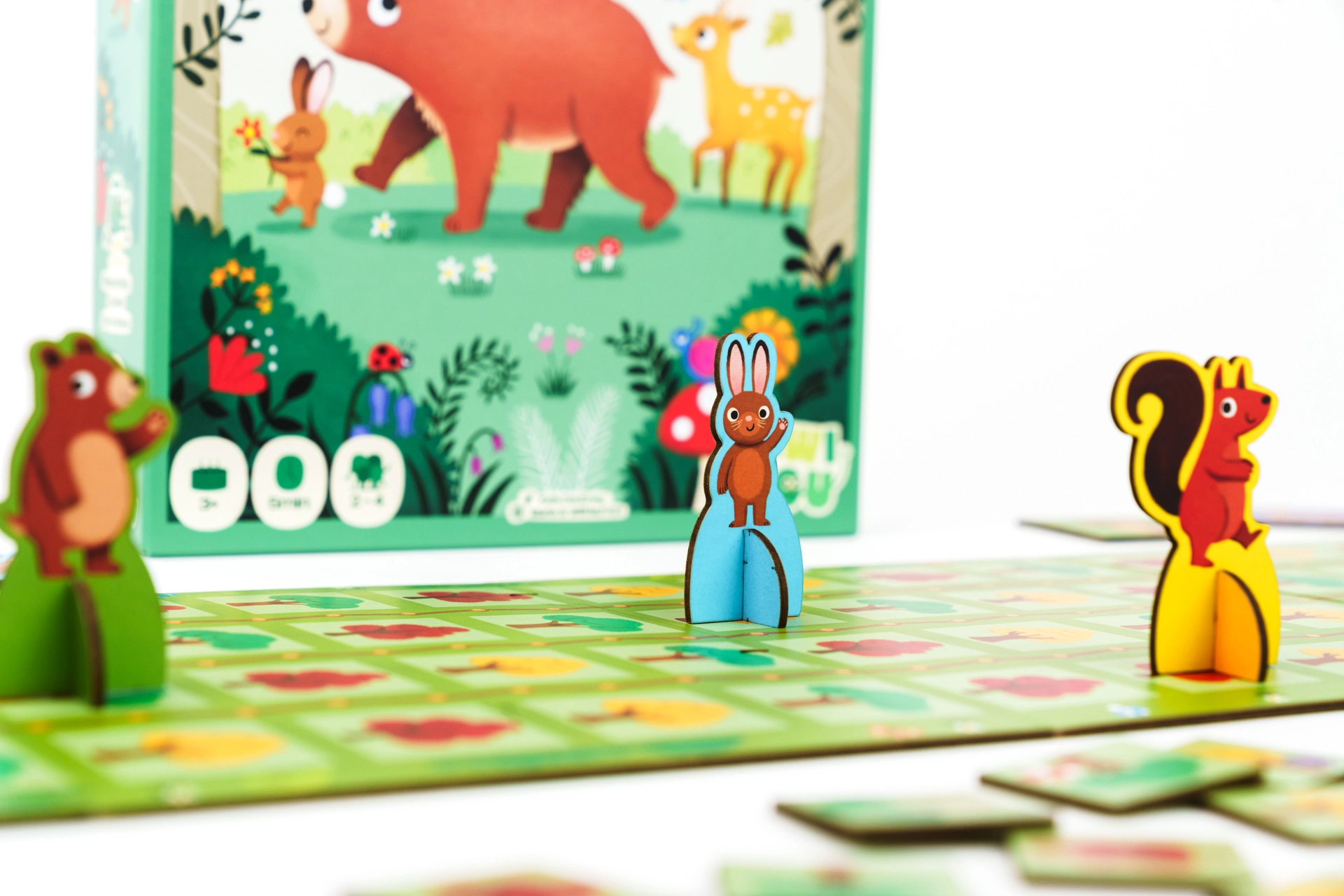 Curse prin pădure este un joc de societate pentru copii, alert și plin de farmec, în care animăluțele drăgălașe încearcă să treacă primele prin pădure până la finish. În loc de aruncarea clasică a zarului, jucătorii extrag simultan jetoane din săculeț – acestea stabilesc pe ce căsuță se vor muta toți. Din când în când apare însă un jeton cu mâncare, iar concurenții nu rezistă unei gustări, ceea ce încetinește plăcut cursa și adaugă un moment de surpriză.