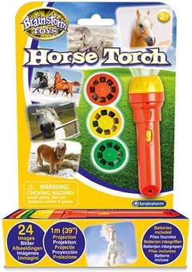 Lanternă LED de buzunar care este totodată un foto-proiector, proiectează imagini color cu cai și ponei de până la 1 metru lățime pe pereți și tavan. Include 3 discuri cu 24 de fotografii ale cailor și poneilor, din 22 de rase diferite. Schimbare ușoară a diapozitivelor, focalizare prin rotirea lentilei și posibilitate de utilizare ca lanternă obișnuită pentru a liniști copiii noaptea.
