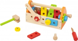 Acest set de unelte din lemn de calitate, de la brandul VIGA din colecția PolarB, este alegerea ideală pentru micii meșteri. Copiii pot înșuruba, bate cuie și asambla diverse construcții, învață să recunoască uneltele și își dezvoltă gândirea tehnică. Piesele colorate îi invită la joacă și, în același timp, antrenează coordonarea și răbdarea.