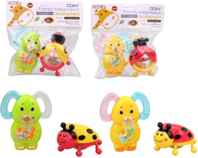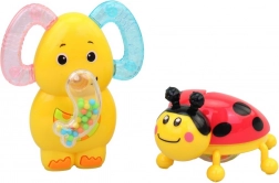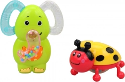 Set practic de două zornăitoare colorate pentru bebeluși de la 3 luni, oferă stimuli sonori blânzi și susține dezvoltarea simțurilor. Datorită construcției ușoare din plastic, se țin ușor în mâinile mici și sunt ideale pentru primele descoperiri. Construcție ușoară și sigură din plastic, potrivite de la 3 luni, sunet plăcut de zornăit, dimensiune compactă 12 × 9 cm.