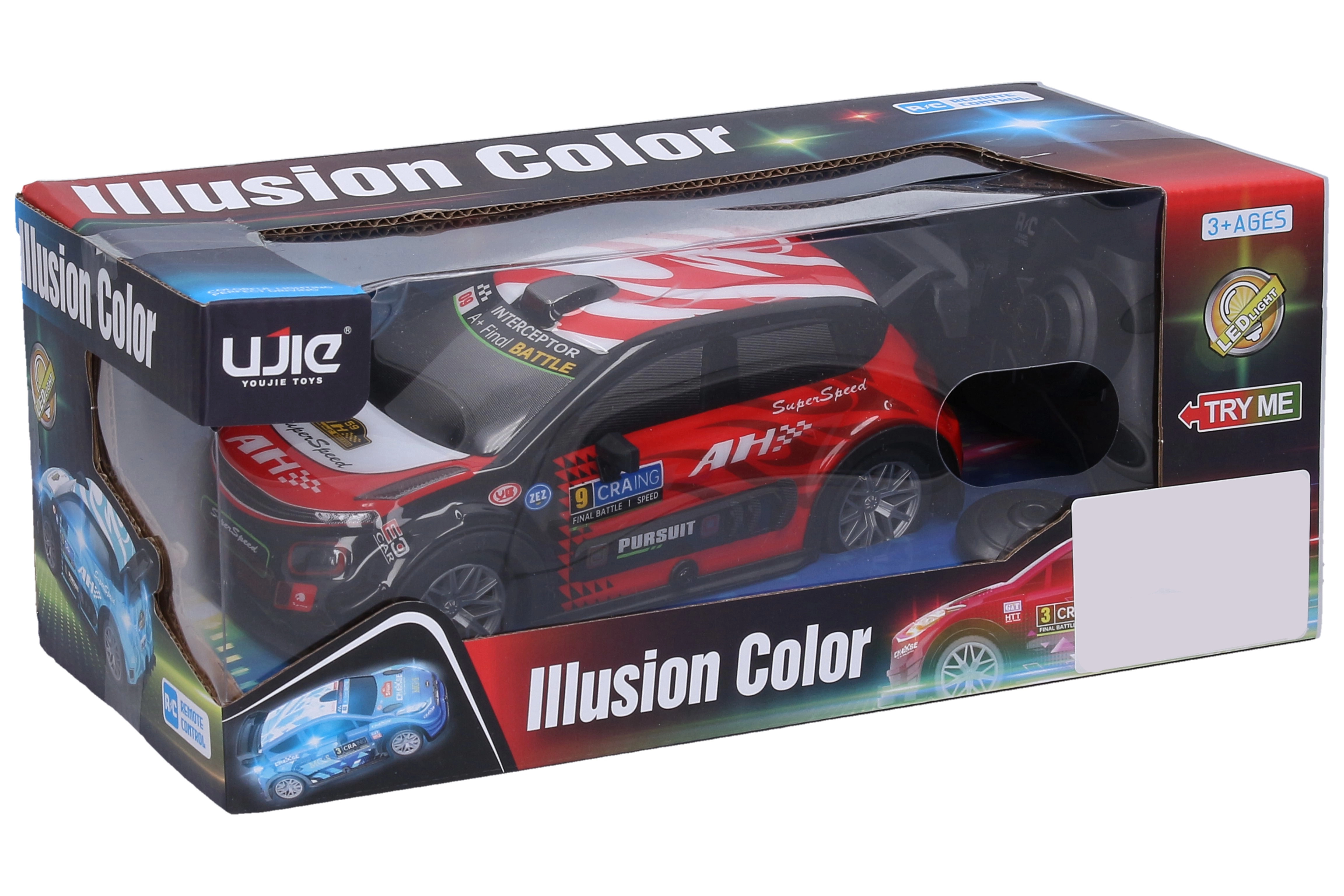 Bucurați-vă de o cursă plină de acțiune cu această mașină RC luminoasă, care se remarcă prin efecte de lumină atrăgătoare și control simplu. Datorită razei de până la 20 de metri și vitezei de până la 10 km/h, este ideală pentru curse în casă și suprafețe mici în aer liber. Comutatorul ON/OFF clar, situat pe partea inferioară a mașinii, și pregătirea ușoară pentru rulare vor încânta atât începătorii, cât și avansații.