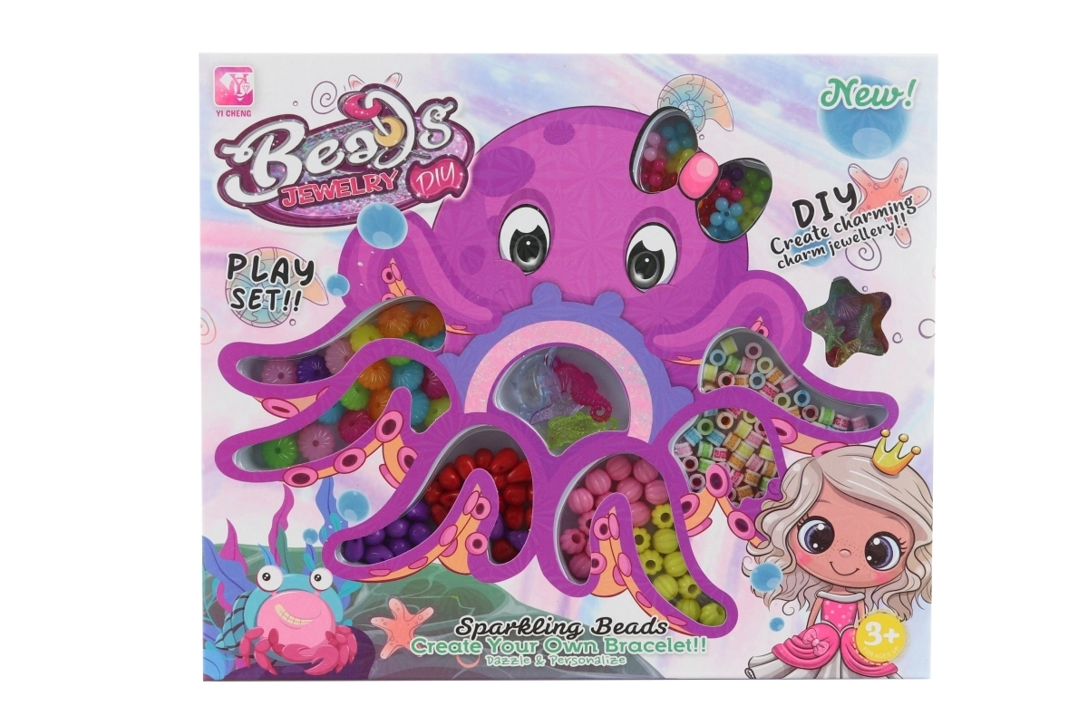 Descoperiți plăcerea înșirării cu acest set variat de mărgele din plastic, depozitate într-o cutie drăguță cu caracatiță. Setul susține creativitatea, motricitatea fină și răbdarea copiilor încă de la 3 ani.