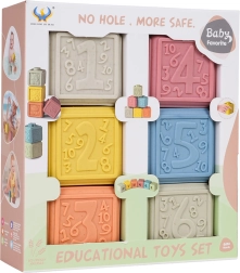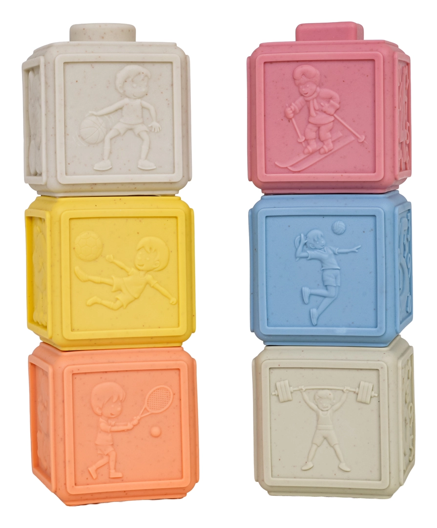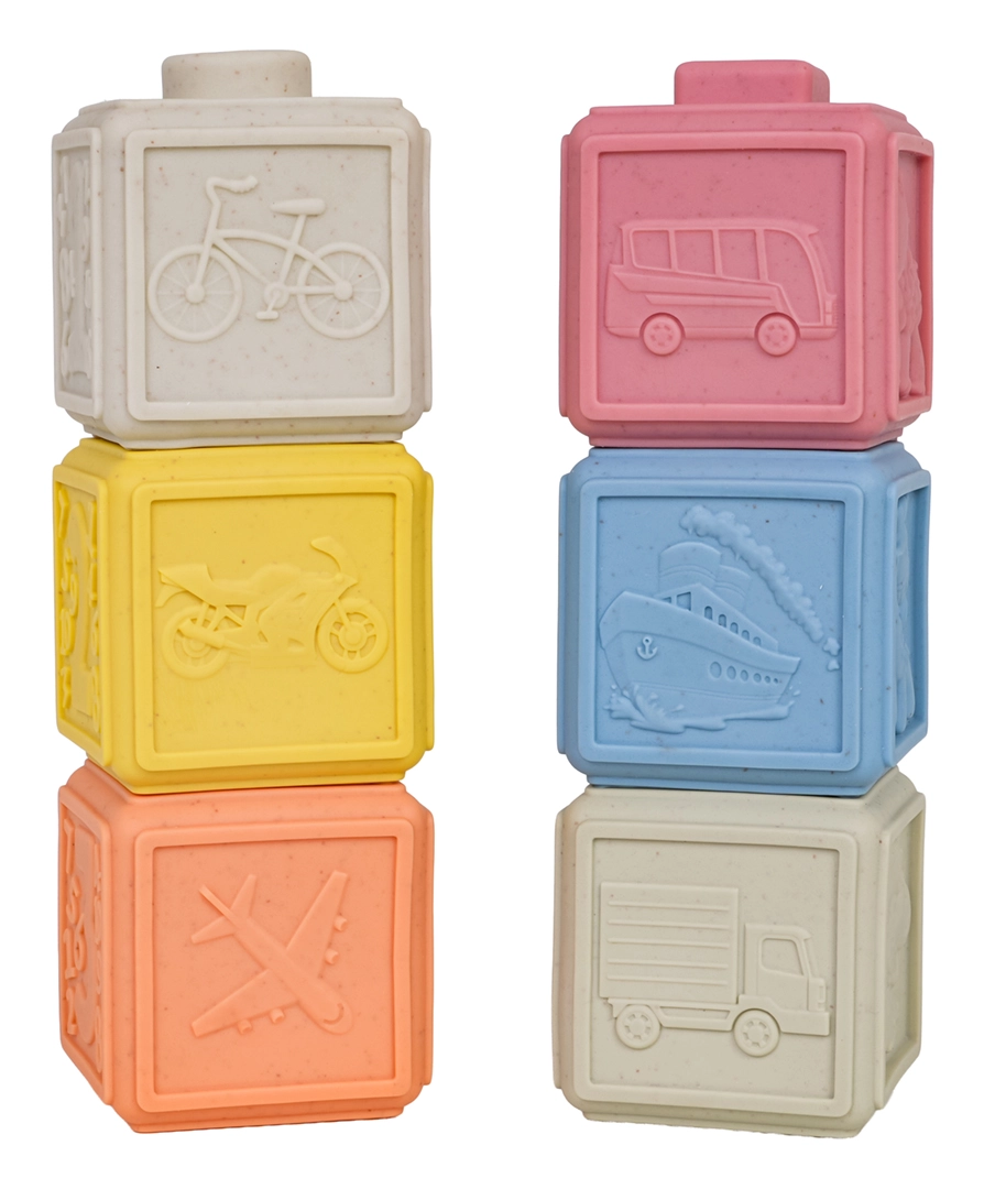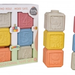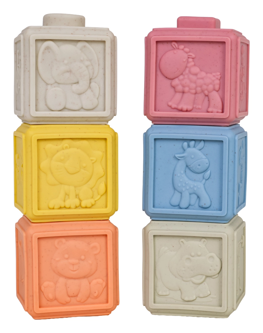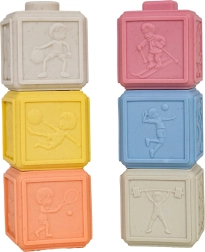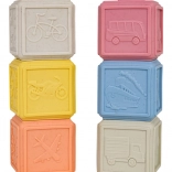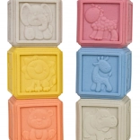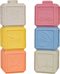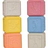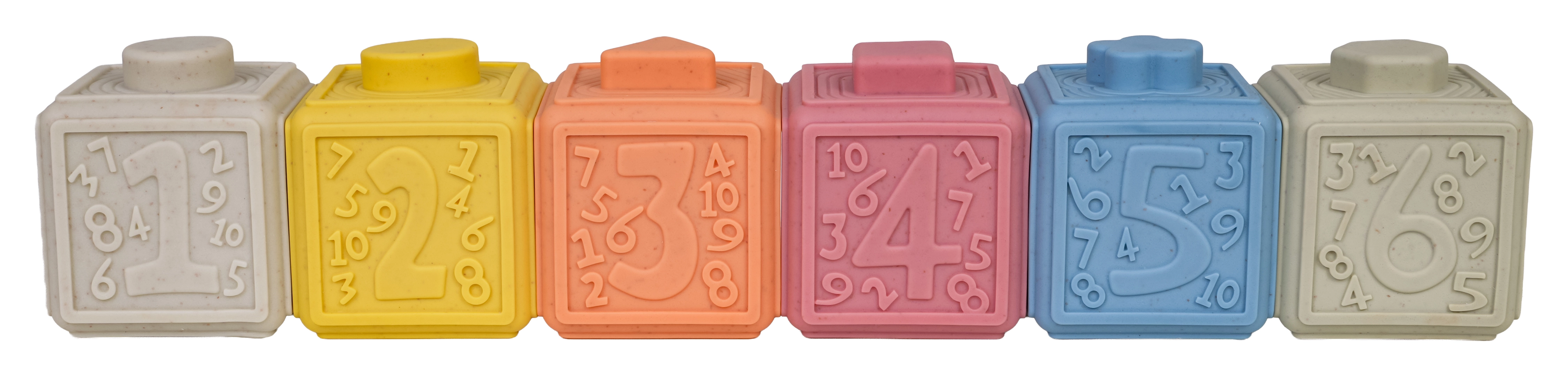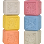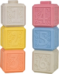 Set ecologic cu 6 cuburi moi în culori pastel oferă posibilități nelimitate de joacă și învățare. Fiecare cub are o textură a suprafeței și motive diferite, care sprijină motricitatea fină, coordonarea mână–ochi și dezvoltarea simțurilor. Datorită materialului sigur și moale, sunt ideale pentru bebeluși și pot fi folosite și ca jucărie de dentiție în timpul erupției dentare.