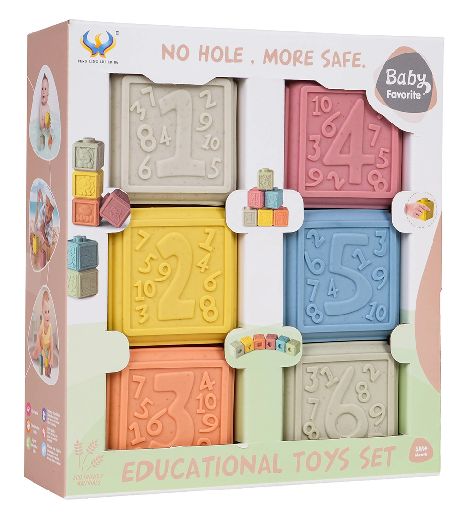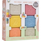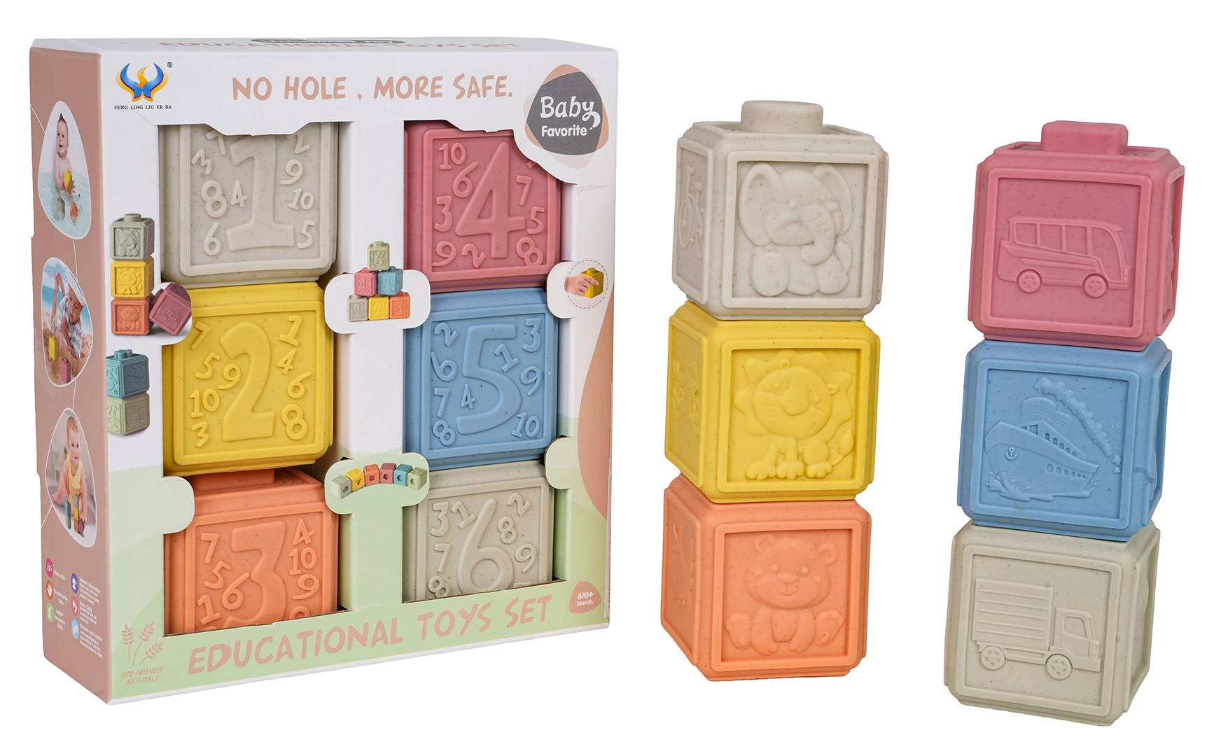 Fiecare cub are o structură reliefată și motive diferite, care stimulează tactilitatea și susțin dezvoltarea motricității fine.