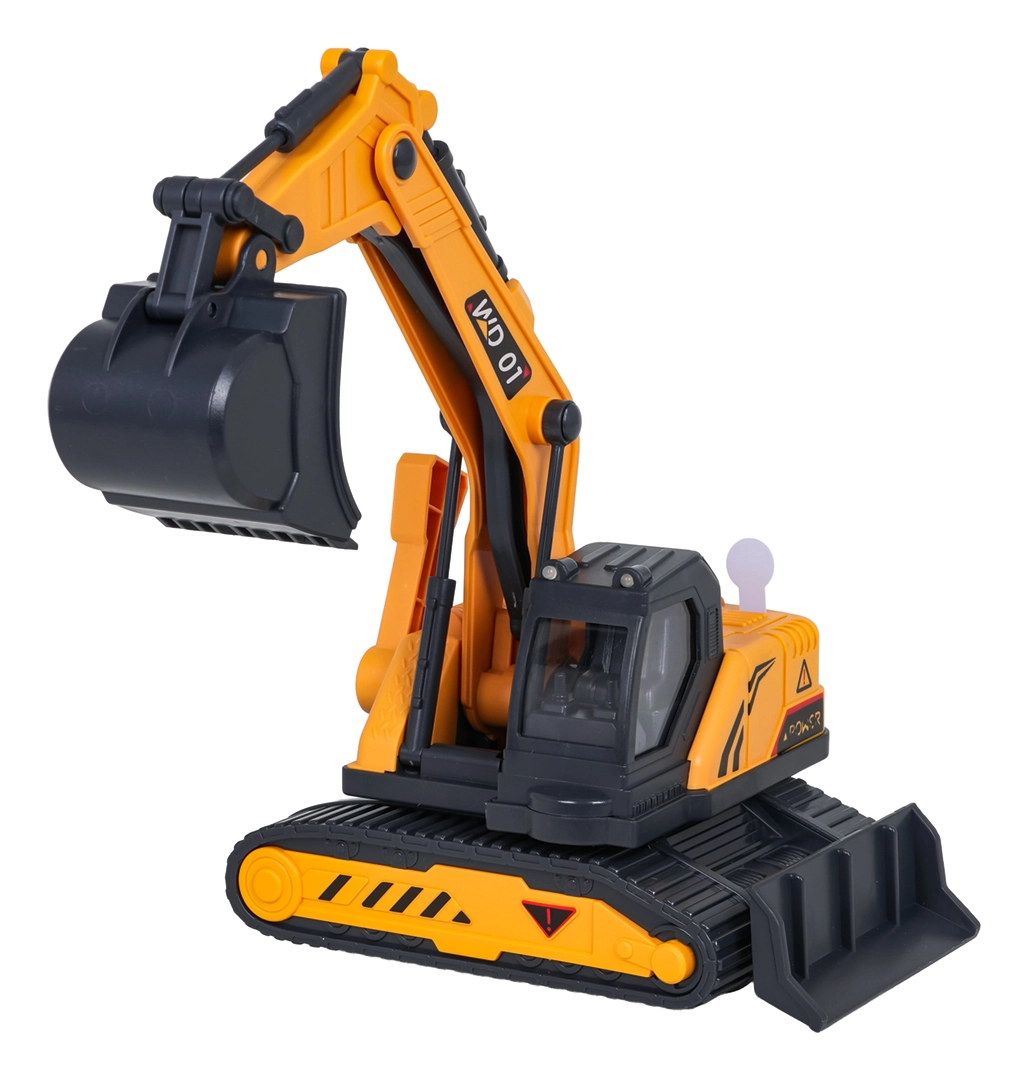 Pe acoperișul cabinei se află panoul de control cu butoane care pornește efectele luminoase (lumini intermitente) și sunetele de pornire, funcționare și mers înapoi. Jucăria este realizată din materiale de calitate, cu accent pe detalii și siguranță, ideală pentru micii fani ai utilajelor de construcții.