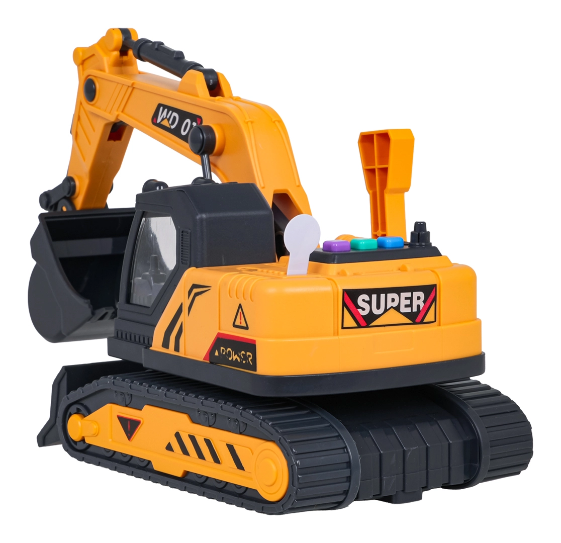 Butoanele de pe acoperiș activează sunetele de pornire, funcționare a excavatorului și mers înapoi, completate de lumini intermitente pentru o experiență și mai realistă.