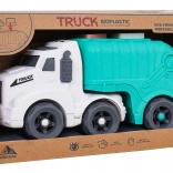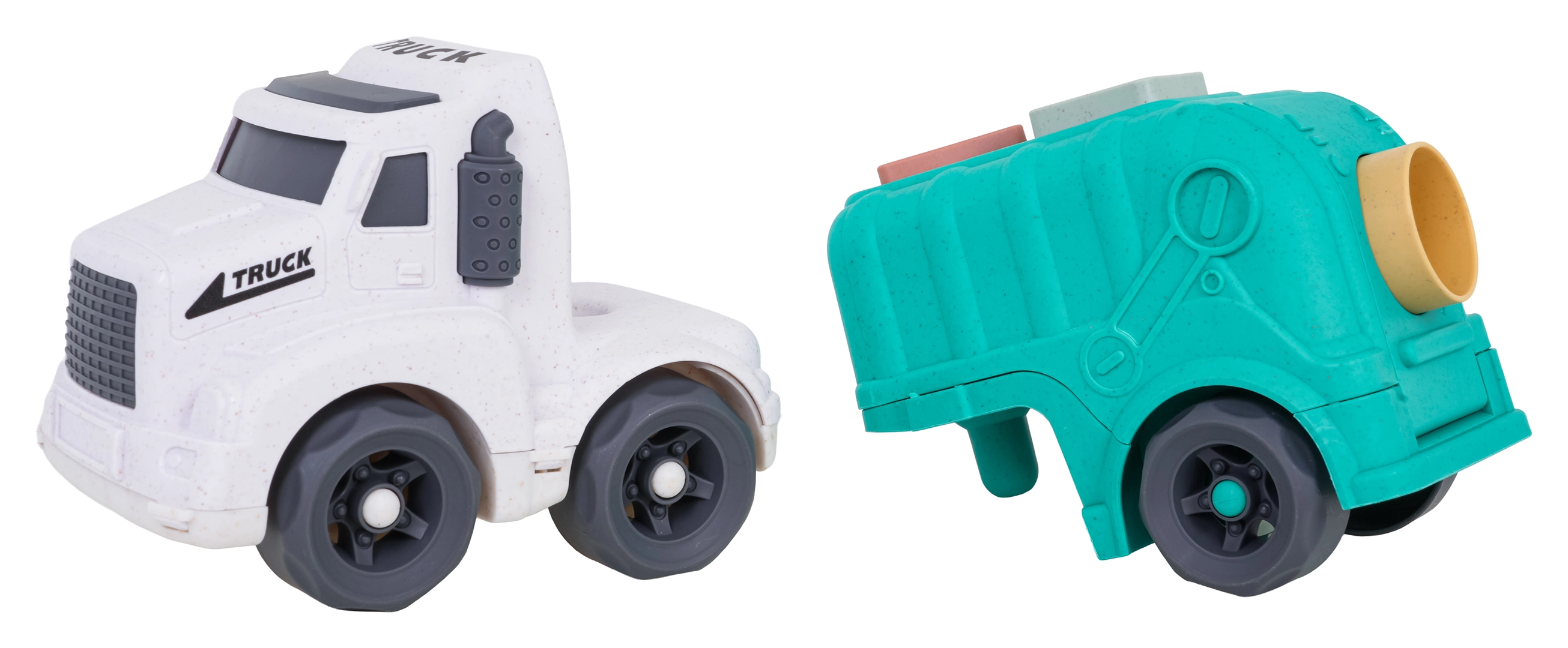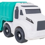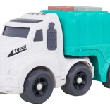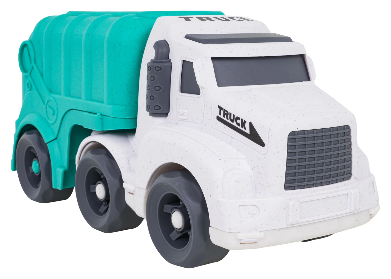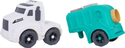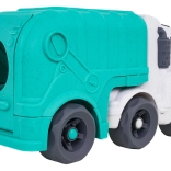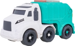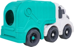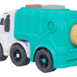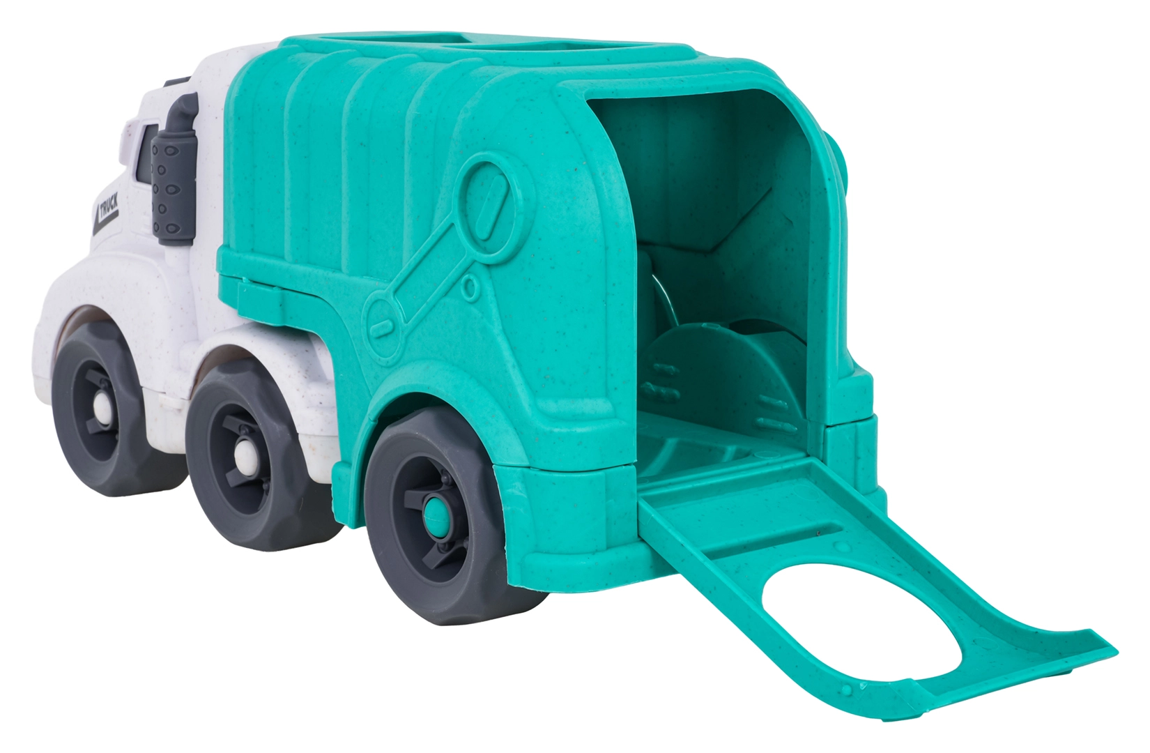 Descoperiți o jucărie distractivă și sustenabilă pentru cei mici – camionul de gunoi realizat din bioplastic de calitate. Datorită sortatorului de pe acoperiș și de pe clapeta din spate, copiii exersează recunoașterea formelor și culorilor, în timp ce roțile mobile încurajează jocul dinamic și creativ. Trapa spate rabatabilă permite acces rapid la cuburi și reluarea ușoară a jocului.
