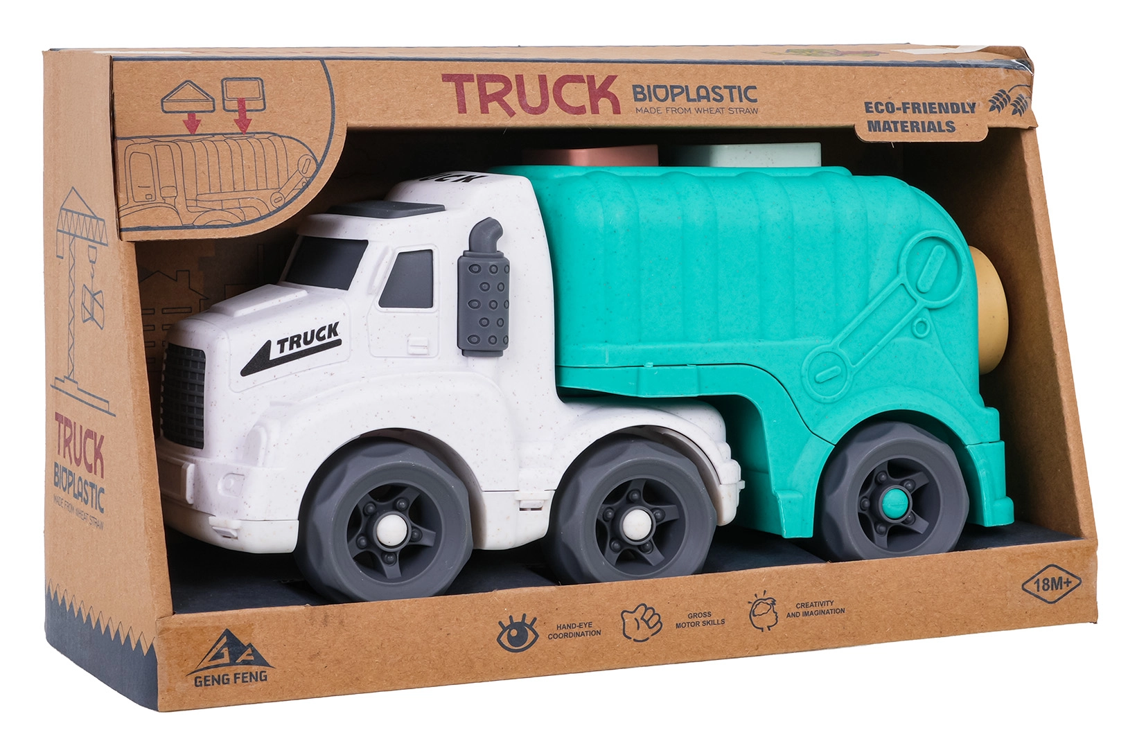Jucăria are margini rotunjite sigure, este rezistentă și potrivită pentru mâinile mici ale copiilor. Dezvoltă coordonarea mână–ochi, gândirea logică și imaginația în jocurile de sortare a deșeurilor. Datorită construcției robuste, este excelentă pe covor, pe podea și pe terenurile de joacă în aer liber.
