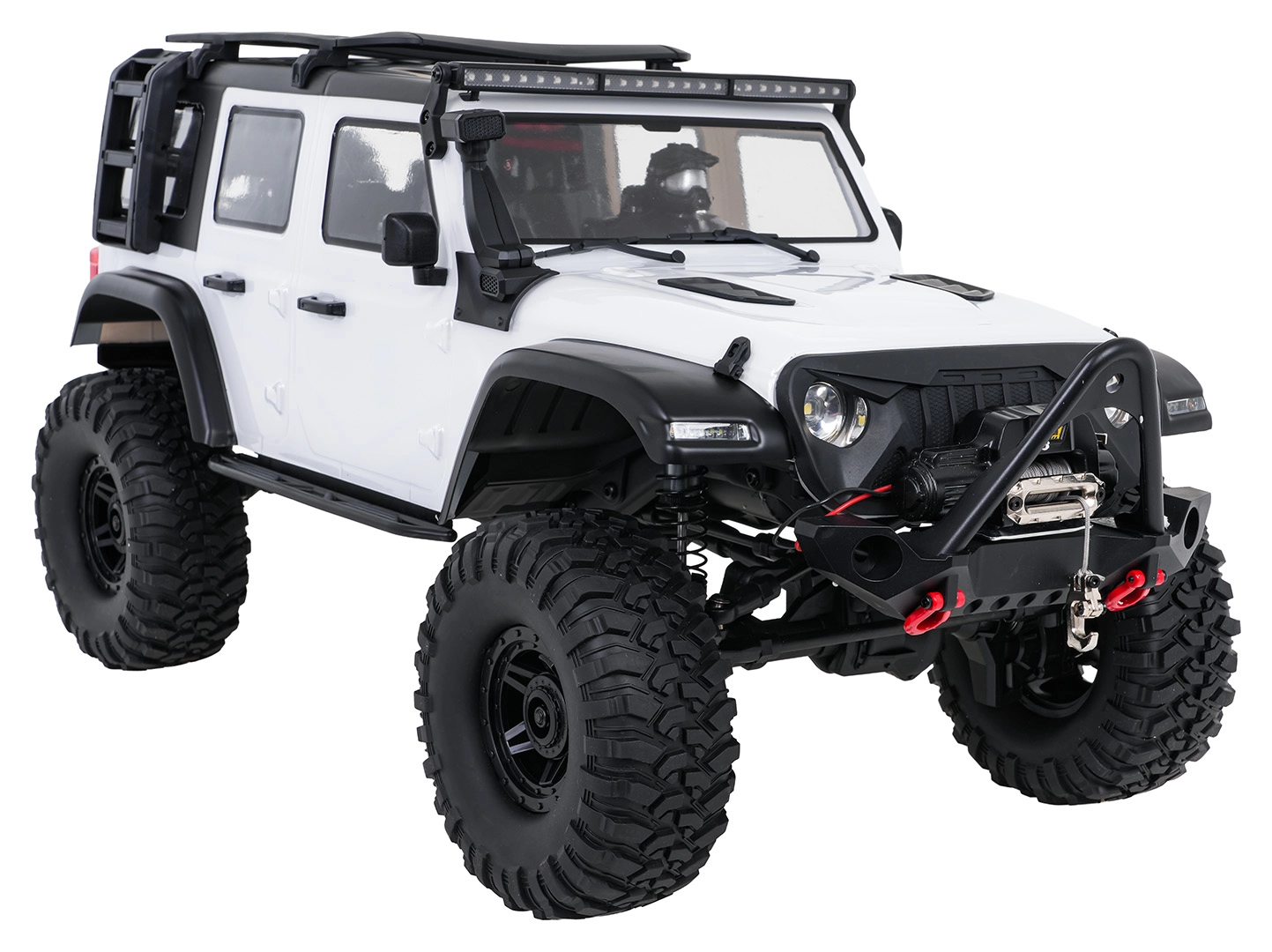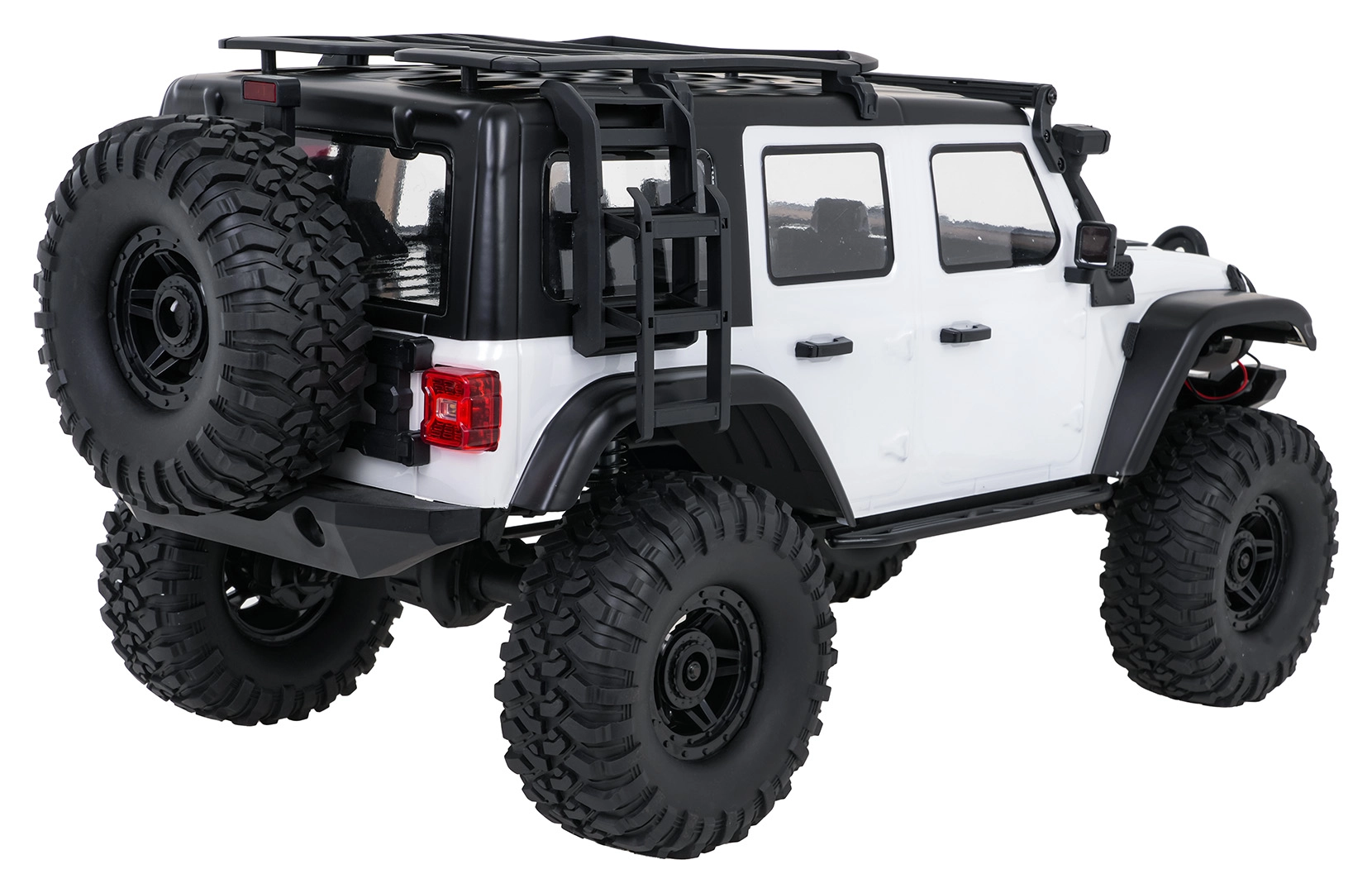 RC auto WILDERNESS este gata de utilizare (RTR) imediat după despachetare. Caroserie vopsită solid, lumini LED complet funcționale (fază scurtă, frână, marșarier, semnalizare) și numeroase accesorii la scară, inclusiv roată de rezervă funcțională, creează combinația perfectă de stil și performanță. Control pe frecvența 2,4 GHz cu posibilitatea alegerii a 2 moduri de viteză și tempomat (viteză constantă).