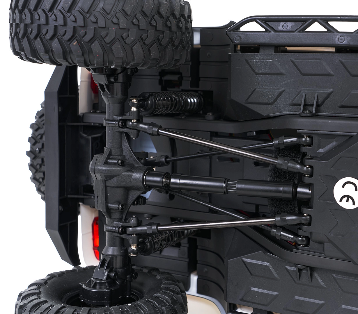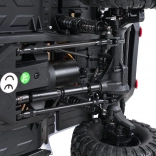 Șasiu cu suspensie independentă pe roți, tije metalice și diferential față și spate pentru trecere excelentă prin teren, unghi mare de bracaj pentru manevrabilitate ușoară, iar execuția rezistentă la apă crește durabilitatea în condiții dificile. Anvelopele puternice cu profil adânc și troliul automat te scot din orice situație.