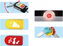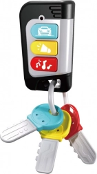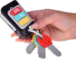 Setul include trei chei prinse, asortate coloristic cu butoanele telecomenzii, și o cheie extensibilă care amintește de o cheie auto reală. Formele diferite ale cheilor dezvoltă simțul tactil, recunoașterea formelor și atenția. Jucăria susține excelent jocul de imitație, independența și coordonarea mână–ochi.