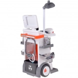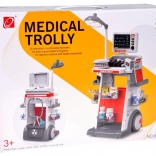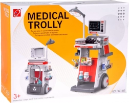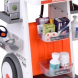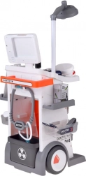 Construcție solidă pe roți, mai multe rafturi și tăvițe pentru depozitarea clară a instrumentelor și “medicamentelor”. Copiii pot lua cu ușurință căruciorul oriunde și au totul la îndemână.