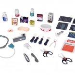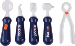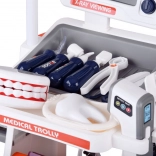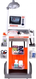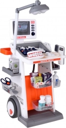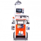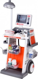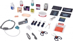 În set este inclusă o gamă largă de accesorii: stetoscop, termometru, oglindă dentară cu LED, pensete, foarfecă, periuță, capsule, cutiuțe de “medicamente”, model de maxilar deschizător și “dinte” separat, card ECG și cartonașe cu radiografii. Datorită construcției mobile și rafturilor de depozitare, setul este ideal pentru jocul în comun și menținerea ordinii.