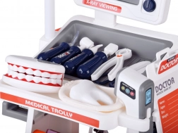 Transformați camera copilului într-un mic cabinet. Căruciorul interactiv cu monitor “X-Ray/ECG”, lampă, compartimente și roți pivotante oferă un joc autentic de-a medicul și dentistul. Copiii pot asculta inima, pot “radiografia” pacientul, pot verifica dinții pe modelul de maxilar și pot încerca în siguranță proceduri obișnuite. Efectele luminoase și sonore realiste intensifică experiența și îi motivează să descopere.