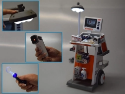 Stetoscopul piuie, termometrul emite semnale și luminează cu LED roșu, oglinda dentară are LED alb, iar lampa oferă o lumină caldă și intensă. ECG redă bătăile inimii și bipăitul – atmosferă ca în cabinet.