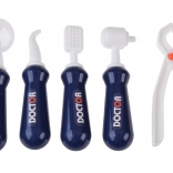 Modelul de maxilar care se deschide și “dintele” separat îi învață pe copii obiceiuri corecte de îngrijire a dinților. Oglinda, periuța și instrumentele stomatologice susțin învățarea prin joacă.