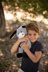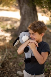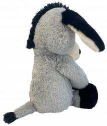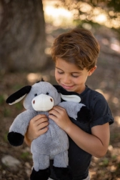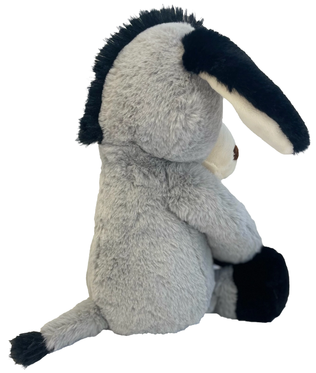 Măgărușul are ochi și nări brodate pentru siguranță maximă fără piese mici, urechi și lăbuțe moi pentru prindere ușoară și cusături rezistente pentru durabilitate. Datorită înălțimii compacte de 40 cm se ține perfect în brațe și invită la alint.
