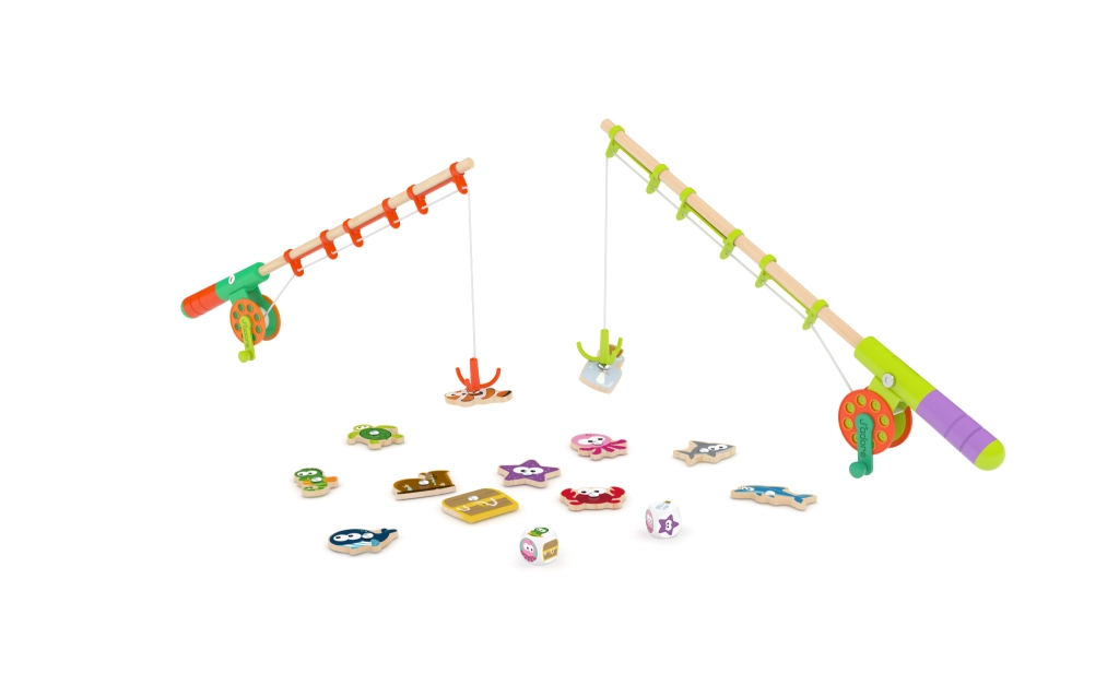 Jocul din lemn Pescuit este un instrument educațional îndrăgit și o jucărie într-unul. Copiii prind peștișori colorați cu undița magnetică, disting culorile și exersează priza. Datorită lemnului rezistent și marginilor netezite, jocul este sigur și plăcut la atingere.