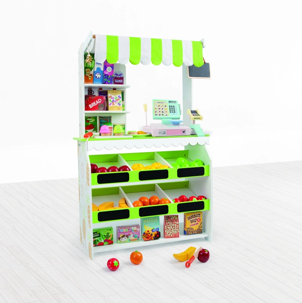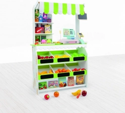 Descoperiți farmecul jocului de-a magazinul cu un set din lemn care oferă o experiență realistă de cumpărare și vânzare. Construcția robustă din lemn natural asigură durabilitate și joacă în siguranță, iar designul elegant înfrumusețează orice cameră de copii.