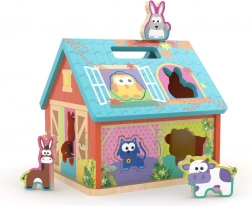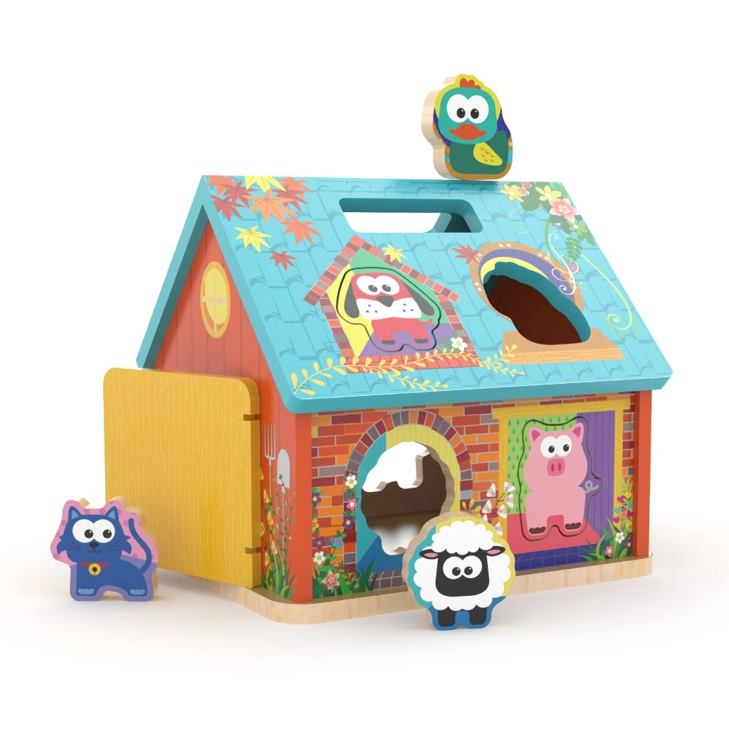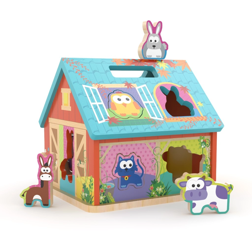 Fiecare piesă reprezintă un animăluț de la fermă și se potrivește în deschiderea corespunzătoare. Copiii exersează recunoașterea formelor și gândirea logică într-un mod natural și distractiv.