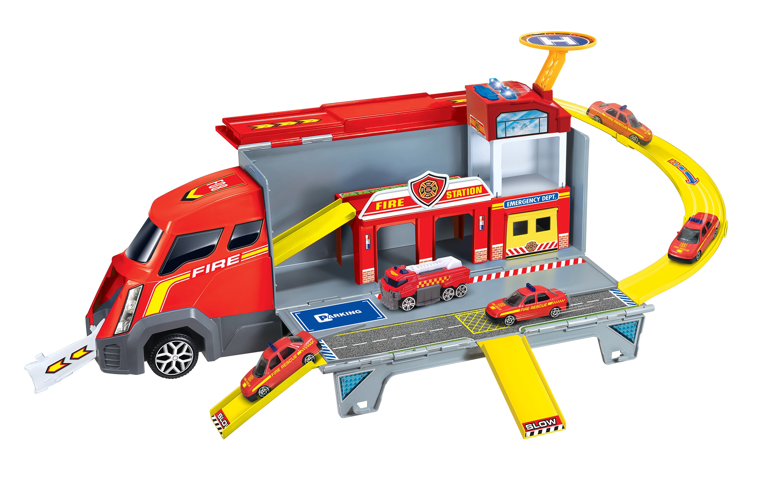 Construcția pliabilă permite transportul ușor și asamblarea rapidă. Ideal ca un cadou pentru copiii care iubesc acțiunea, vehiculele și temele de salvare.