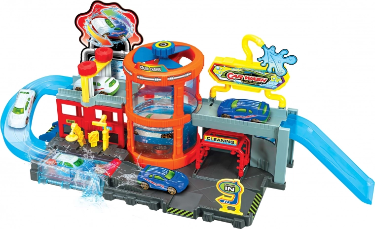 Această spălătorie auto pentru copii este concepută pentru distracție jucăușă și sigură. Include o mașinuță specială cu funcție de schimbare a culorii, care reacționează la apă caldă și rece. Copiii pot spăla, clăti și urmări cum culorile se schimbă magic – iar și iar.